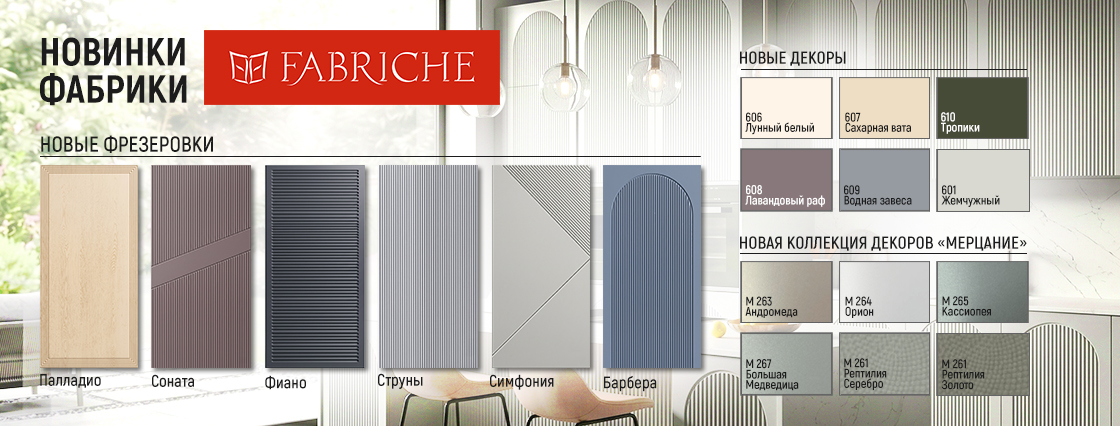 - мебельные фасады, профили, кромки и ручки;