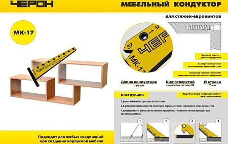 МК-17 Кондуктор мебельный "угольник" для евровинтов, длина 288мм, шаг 32мм, d втулки 7мм