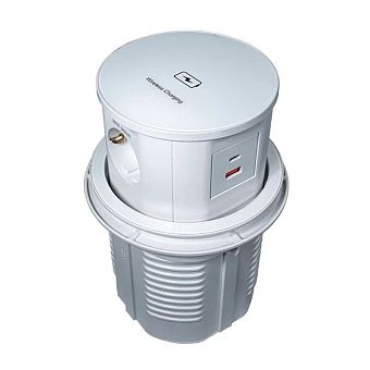Блок розеток встр. круг. d120мм, 16А, 3 пост, бел., 1USB, 1Type-C, беспр. зарядка, провод 1,8м