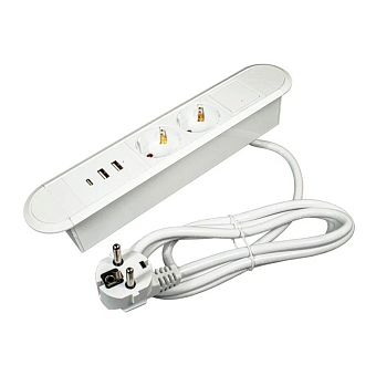 Блок розеток встр. OPTIMA 12А, выкл., 2 пост, бел., 2USB, 1Type-C, провод 1,8м