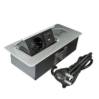 Блок розеток выдв. прямоуг. COMPLEX 1 роз., 1xUSB, 1хType-C, беспр. зар. серебр., провод 1,8м с вилкой