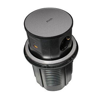 Блок розеток встр. круг. d120мм, 16А, 3 пост, черн., 1USB, 1Type-C, провод 1,8м