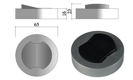 Выключатель накладной меб. круглый d66х16мм, 250В, 2,5А, с пров. 0,2м, сер. черн.