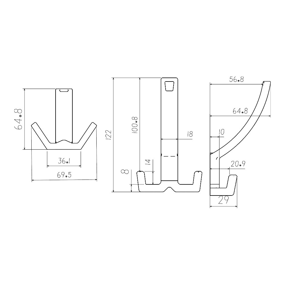 Крючок мебельный 3-x рожковый EVA ANGLE хром