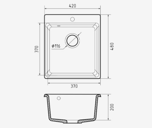 Глубина чаши 200 мм позволяет без труда мыть крупногабаритную посуду, а также минимизирует разбрызгивание воды.