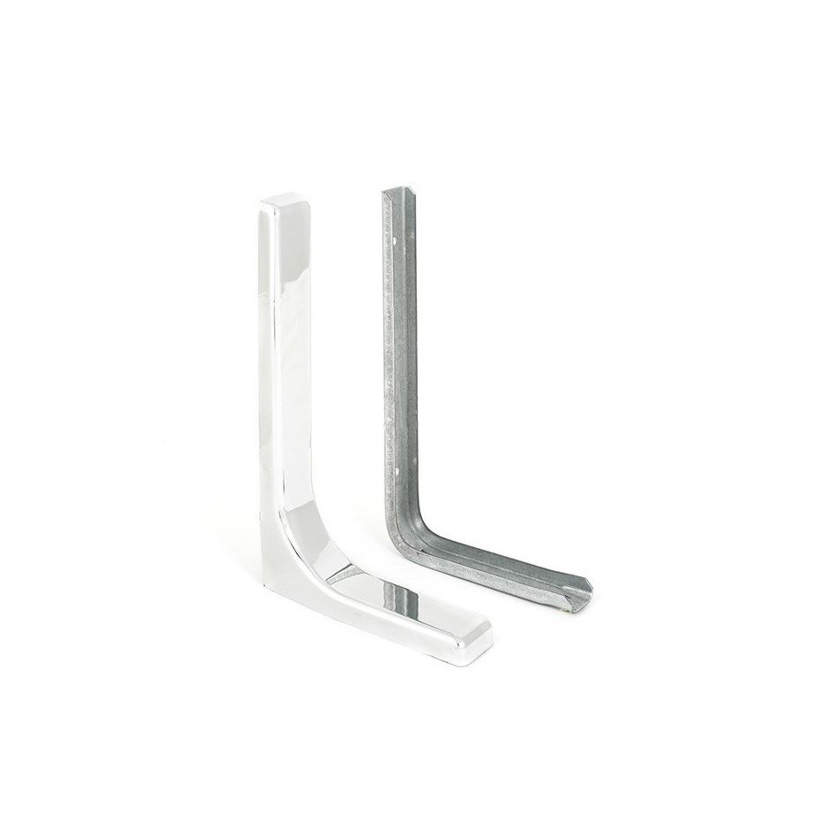 используют для монтажа стеллажей, настенных и внутренних полок шкафов . Кронштейн изготовлен из стали, на который защелкивается цветная пластиковая накладка. Выдерживают нагрузку до 20 кг на пару.