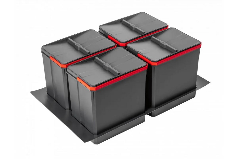 Комплект ведер AxiSpace для модуля 800 мм (4x15L) антрацит - набор вместительных емкостей для бытовых отходов, предназначенный для установки в ящик 800 мм выдвижной системы Axis Pro, Modern Box Pro, Modern Box. Ведра AxiSpace являются первым продуктом такого типа на рынке, который сделан из материала, содержащей графеновые частицы с бактерицидными свойствами. Графен - это наноматериал изготовленный из углерода с антибактериальным и противогрибковым эффектом. Он удаляет со своей поверхности до 99% микроорганизмов в течение 120 минут. Комплект позволяет сортировать мусор в соответствии с современной практикой утилизации отходов.