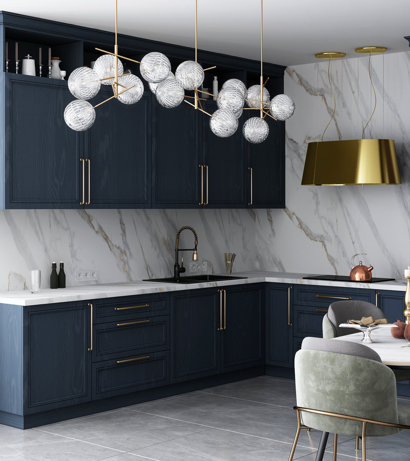 Золотые прожилки в сочетании с крупной натуральной фактурой декора Мрамор Саяны позволят каждому найти именно свое элегантное решение в дизайне интерьера кухни.